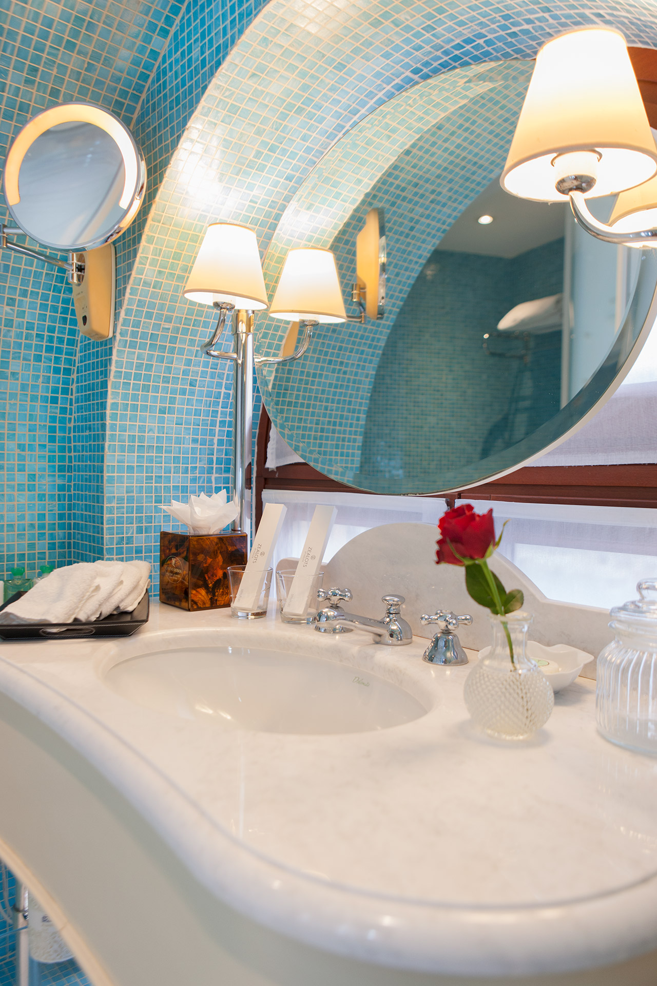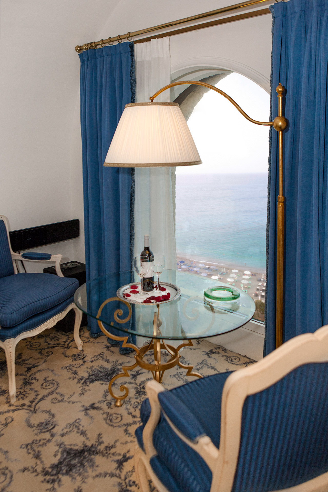 This exceptional suite of 79 m² is designed in romantic blue nuances and spans two levels, each offering stunning, uninterrupted views across the Aegean.